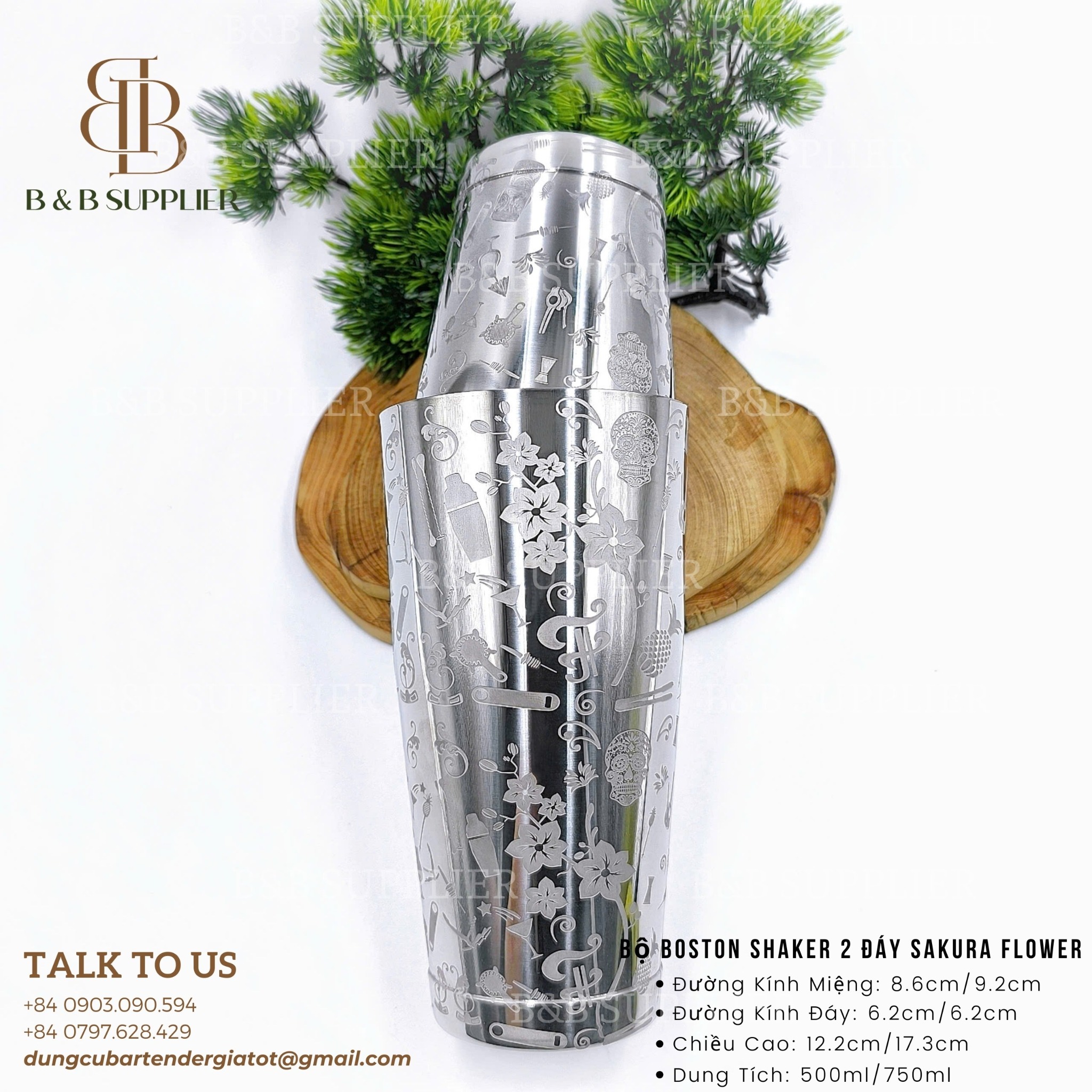 - Tên sản phẩm: Bộ Boston Shaker 2 Đáy Sakura Flower