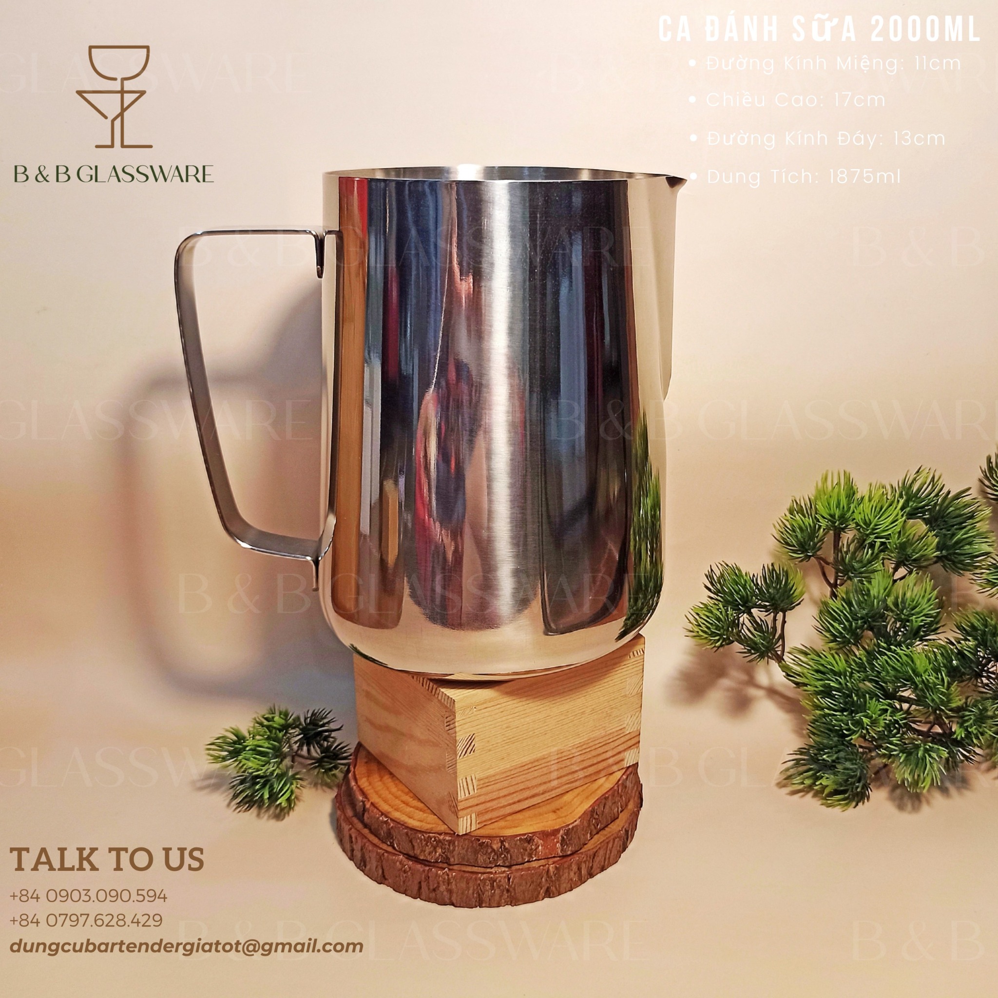 - Tên sản phẩm: Ca Đánh Sữa Inox 2000ml