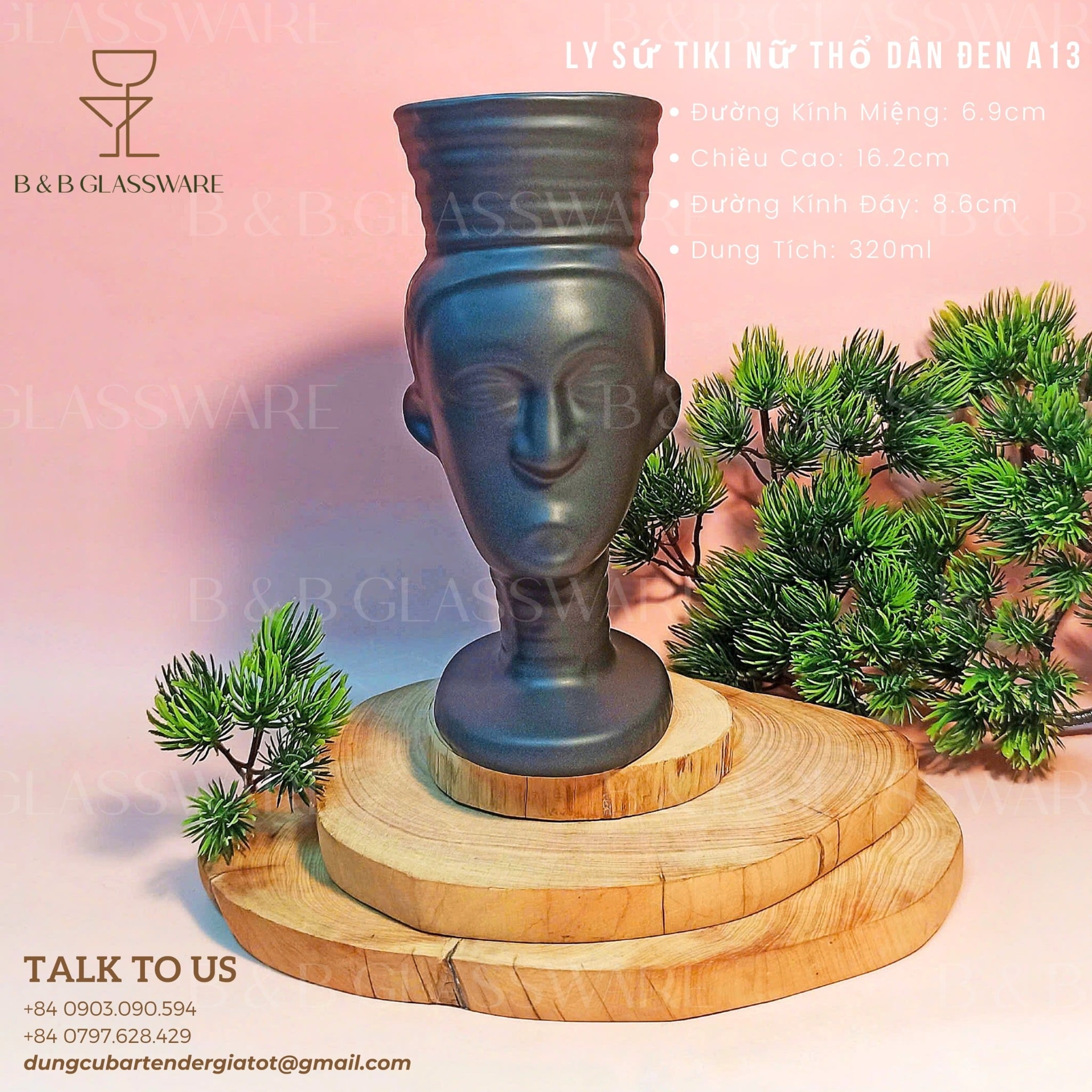 - Tên sản phẩm: Ly Sứ Tiki Nữ Thổ Dân - Đen A13
